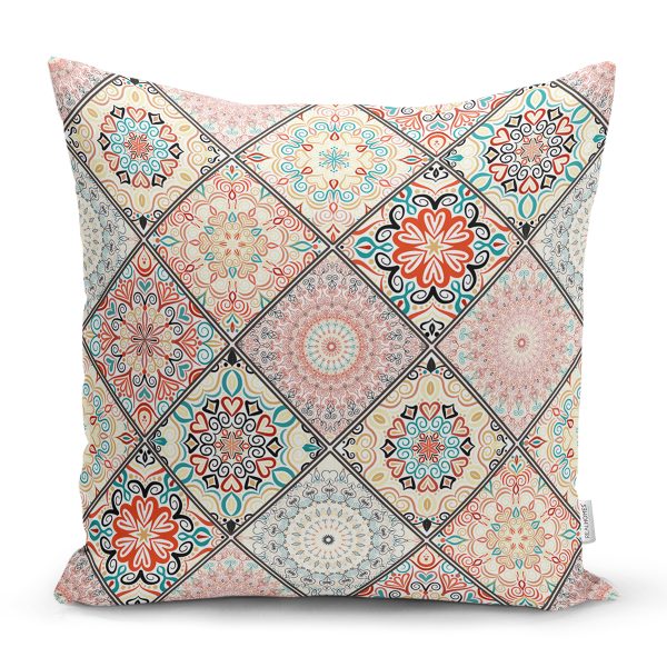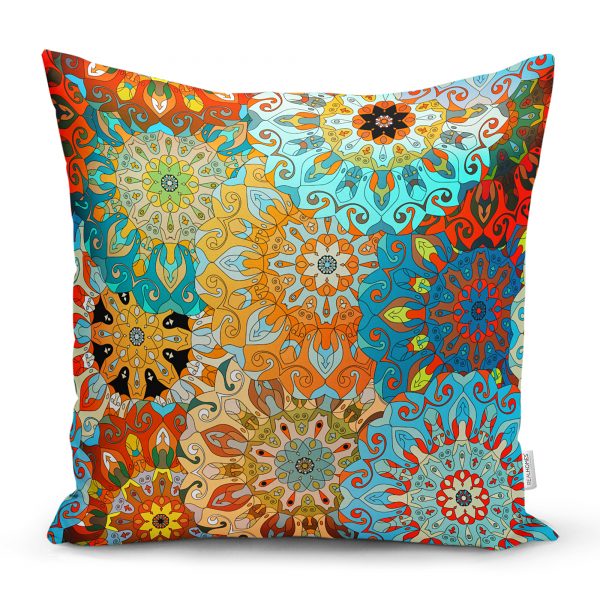 Geometrik Şekilli Hint Desenli Baskılı Dijital Baskılı Yastık Kırlent Kılıfı
