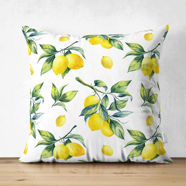 Çift Taraflı Beyaz Zeminde Limon Desenli 3D Dekoratif Süet Yastık Kırlent Kılıfı