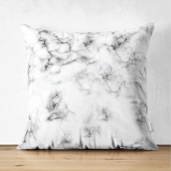 Çift Taraflı Açık Mermer Zeminli Dijital Baskılı Süet Yastık Kırlent Kılıfı