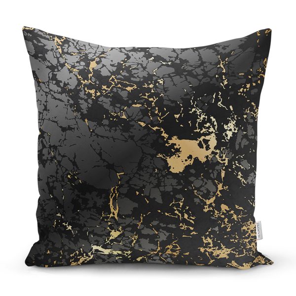 Siyah Zeminde Gold Renkli Çizim Desenli Dijital Baskılı Modern Yastık Kılıfı
