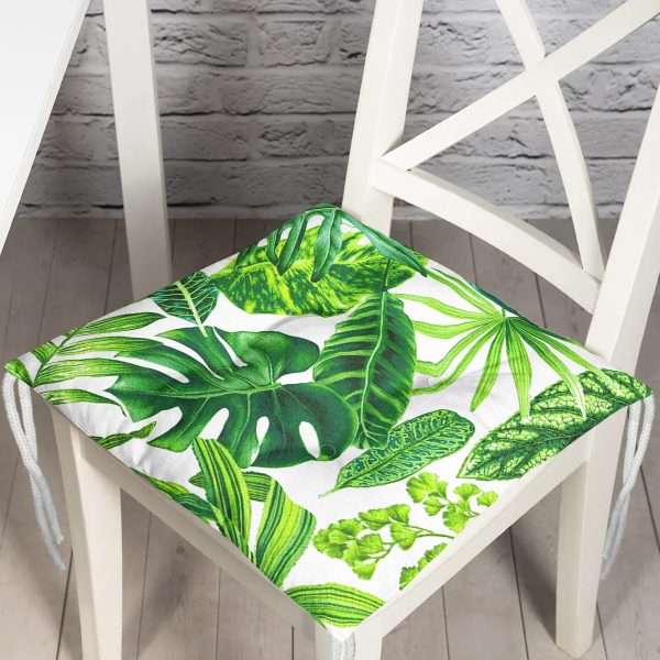 Beyaz Zeminde Watercolor Yapraklar Özel Tasarımlı Pofuduk Sandalye Minderi