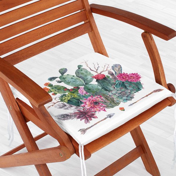 RealHomes Dijital Baskılı Pofuduk Sandalye Minderi 40 x 40 cm Düğmeli