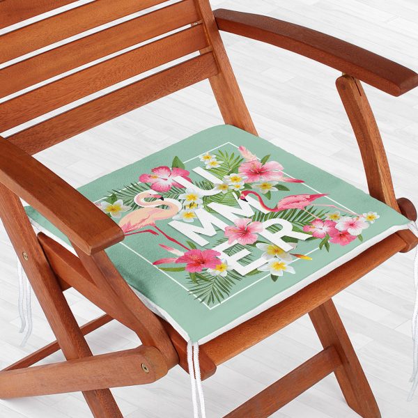 lamingo Desen Dekorati Kare Sandalye Minderi 40x40cm ermuarlı