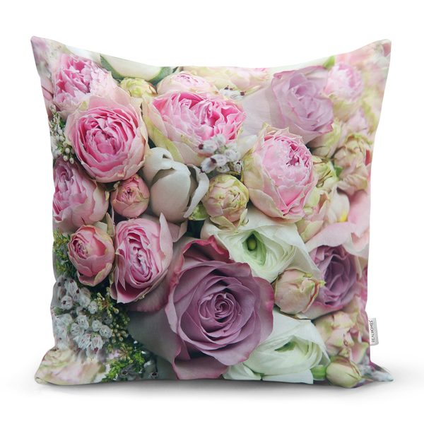Pembe Güller Dijital Baskılı Dekoratif Yastık Kırlent Kılıfı