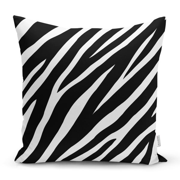 Çift Taraflı Siyah Beyaz Çizgili Dekoratif Süet Yastık Kırlent Kılıfı