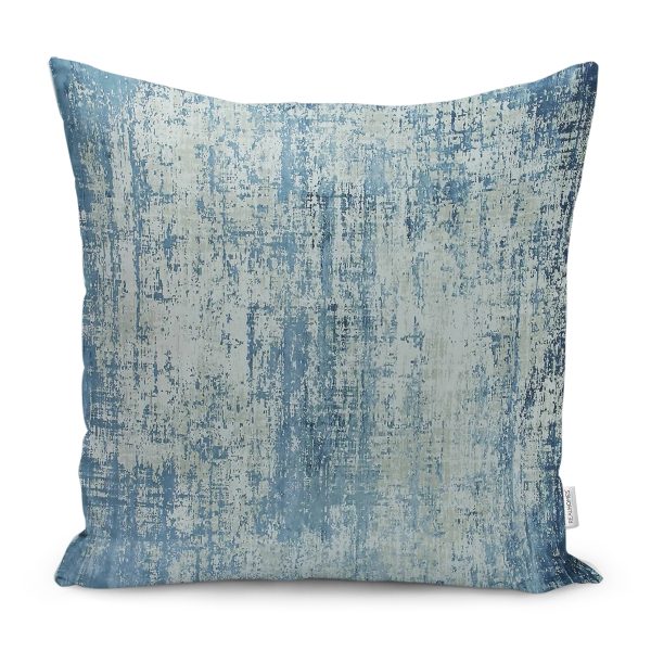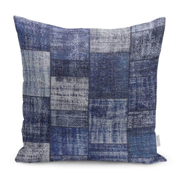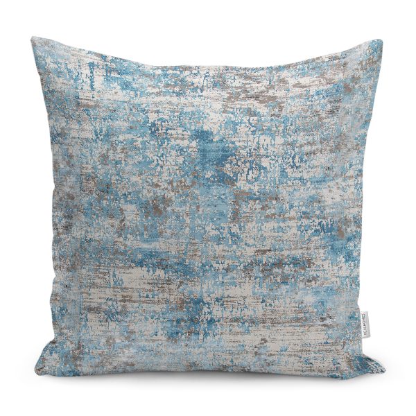 RealHomes Mavi Zeminde Geometrik Motifli Eskitme Desenli Dijital Baskılı Yastık Kırlent Kılıfı