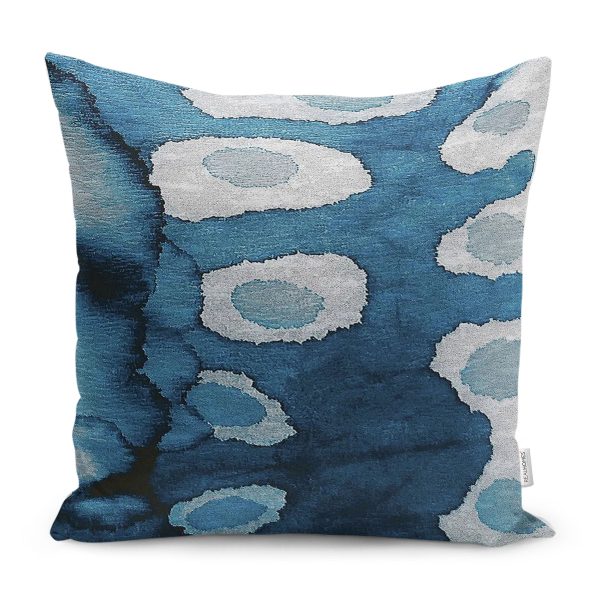 RealHomes Mavi Zeminde Sulu Boya Motifli Modern Sanat Desenli Dijital Baskılı Yastık Kırlent Kılıfı