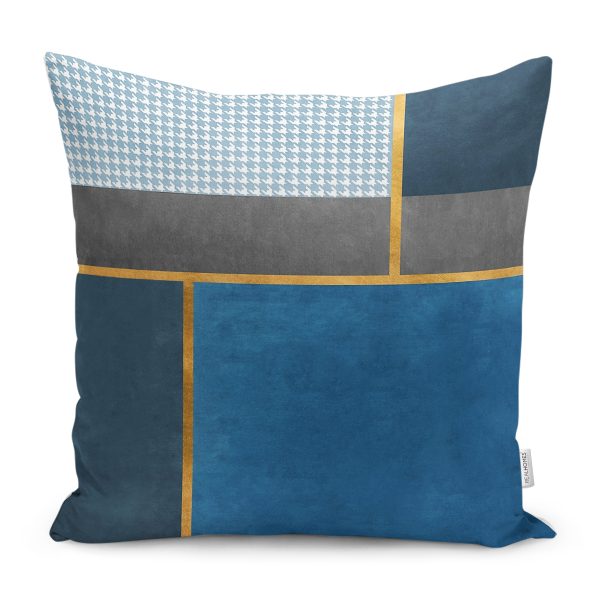 RealHomes Mavi Zeminde Geometrik Motifli Modern Sanat Desenli Dijital Baskılı Yastık Kırlent Kılıfı