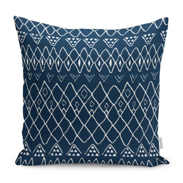 RealHomes Mavi Zeminde Etnik Motifli Örgü Desenli Dijital Baskılı Yastık Kırlent Kılıfı