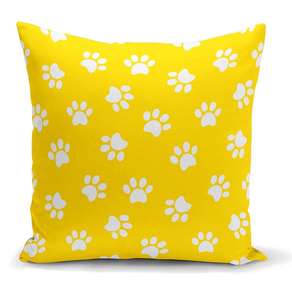 Sarı Zeminli Pati Resimli Dijital Baskılı Dekoratif Kırlent Kılıfı