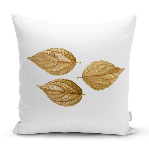 3D Altın Yapraklar Özel Tasarımlı Modern Yastık Kırlent Kılıfı