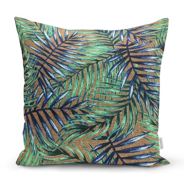 Ekru Zeminde Amazon Yaprakları Özel Tasarım Yastık Kırlent Kılıfı