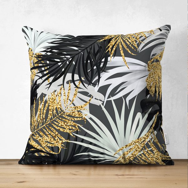 Çift Taraflı Siyah Zeminde Palmiye Yaprakları Özel Tasarım Süet Yastık Kırlent Kılıfı