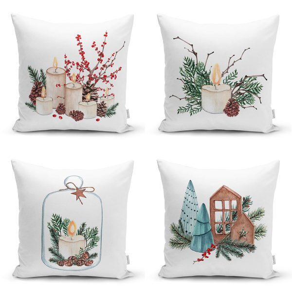 4’lü Özel Tasarım Mum Temalı Dijital Baskılı Modern Kırlent Kılıfı Seti