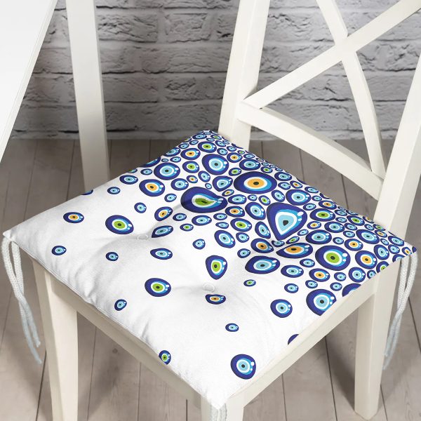 Realhomes Nazar Boncuğu Motifli Dijital Baskılı Modern Pofuduk Sandalye Minderi