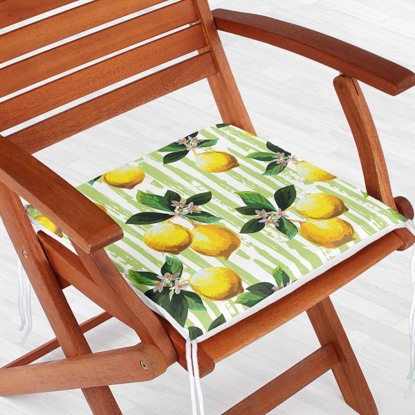 Yeşil Zeminli 3 Boyutlu Limon Desenli Dijital Baskılı Fermuarlı Sandalye Minderi