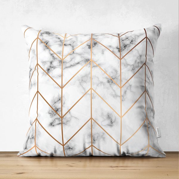 Mermer Zeminli Geometrik Desenli Modern Çift Taraflı Süet Yastık Kırlent Kılıfı