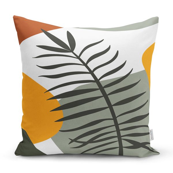 Renkli Zeminli Onedraw Çizimli Yaprak Desenli Dijital Baskılı Modern Yastık Kılıfı