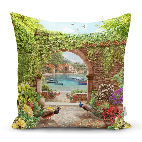 Otantik Bahçe Yağlıboya Tasarımlı Dekoratif Dikdörtgen Yastık Kırlent Kılıfı