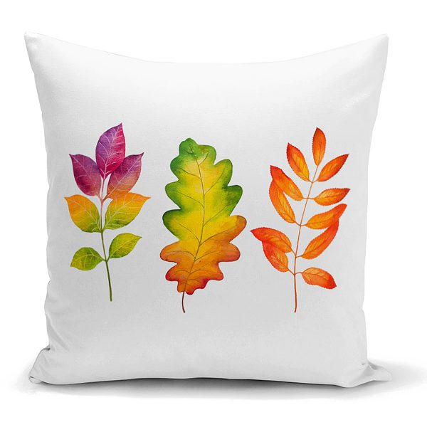 Modern Renkli Yaprak Desenli Dijital Baskılı Kırlent Kılıfı