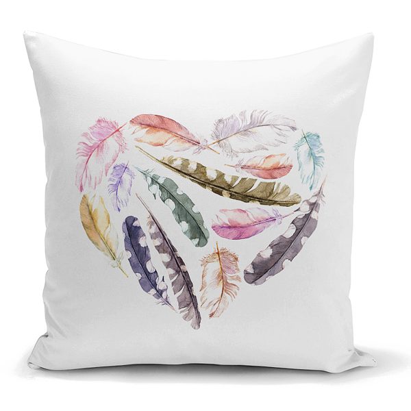 Renkli Tüyler Kalp Motifli Dekoratif Yastık Kırlent Kılıfı