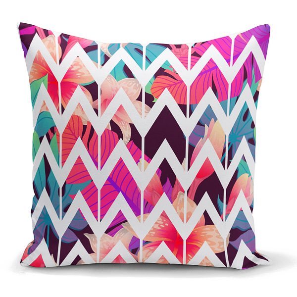 Nilüfer Temalı Zigzag Desenli Dijital Baskılı Yastık Kırlent Kılıfı