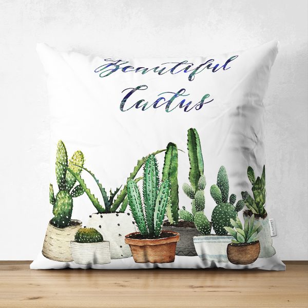 Çift Taraflı Beatiful Cactus Dijital Baskılı Süet Yastık Kırlent Kılıfı