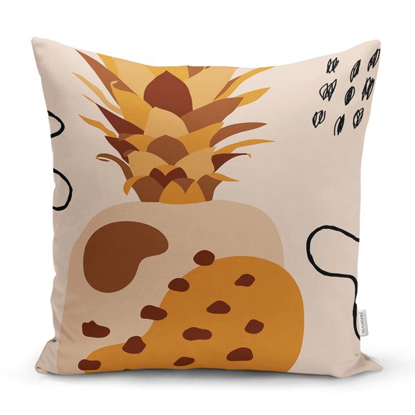 Renkli Zeminde Onedraw Çizimli Ananas Desenli Dijital Baskılı Modern Yastık Kılıfı