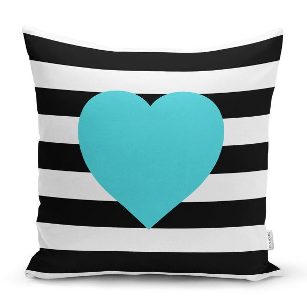 Çizgili Yaldızlı Kalpler Dijital Baskılı Dekoratif Yastık Kırlent Kılıfı