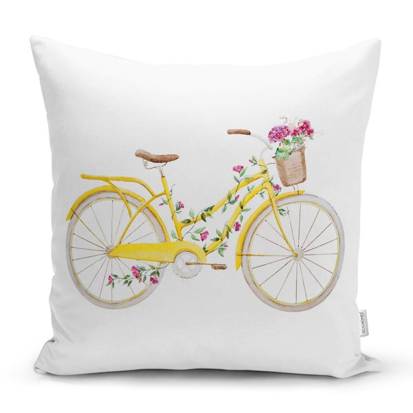 Bisiklet Desenli Dijital Baskılı Dekoratif Yastık Kırlent Kılıfı