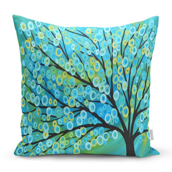 Gri Zeminli Ağaç Temalı Dijital Baskılı Dekoratif Yastık Kılıfı