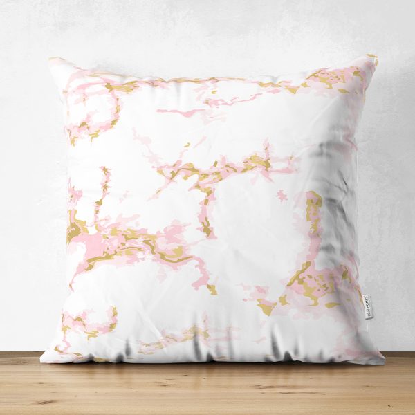 Çift Taraflı Mermer Gorunumlu Gold Detaylı Dijital Baskılı Modern Süet Yastık Kırlent Kılıfı