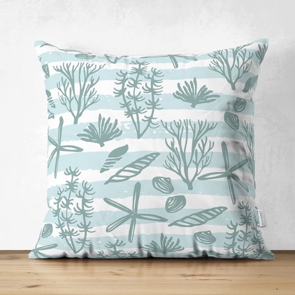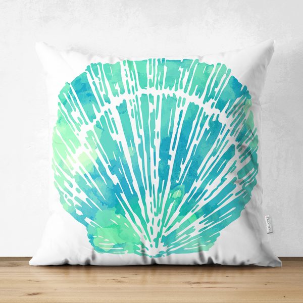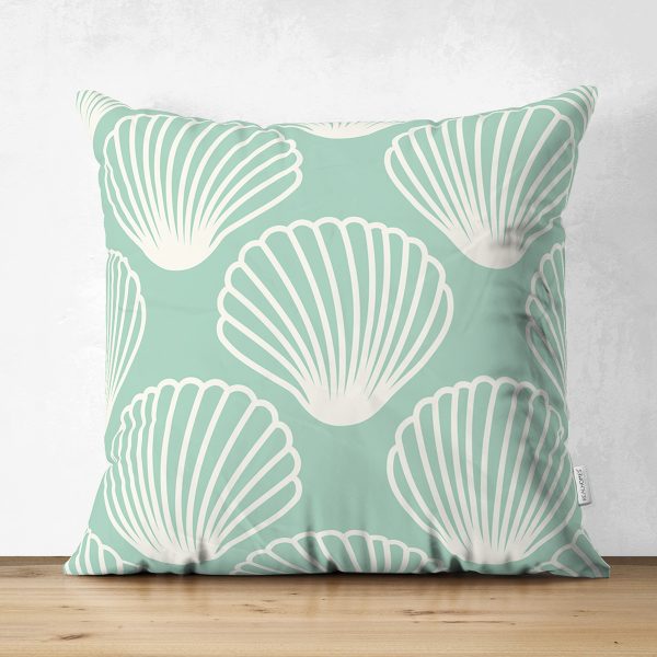 Çift Taraflı Yeşil Zeminde Deniz Kabuğu Desenli Dijital Baskılı Modern Süet Yastık Kırlent Kılıfı