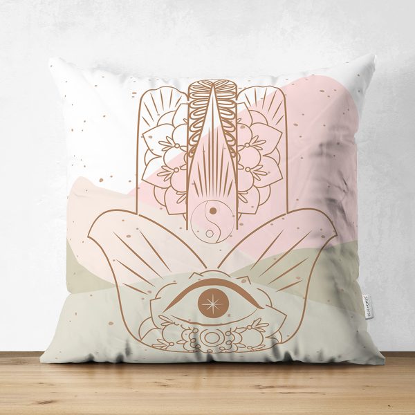 Çift Taraflı Fatma Ana Eli Motifli Dijital Baskılı Modern Süet Yastık Kırlent Kılıfı