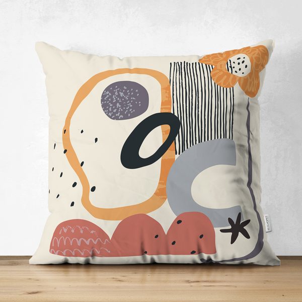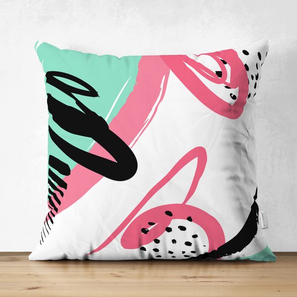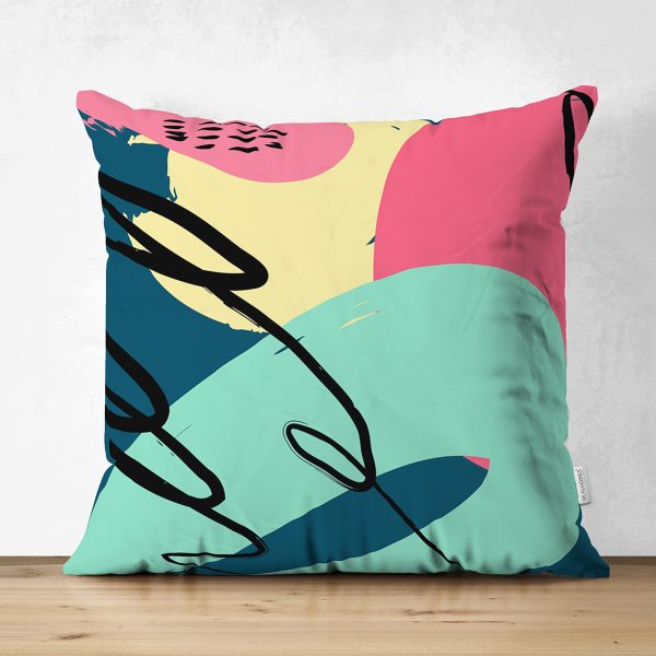 Çift Taraflı Renkli Zemin Üzerinde Soyut Çizimli Modern Geometrik Desen Süet Yastık Kırlent Kılıfı