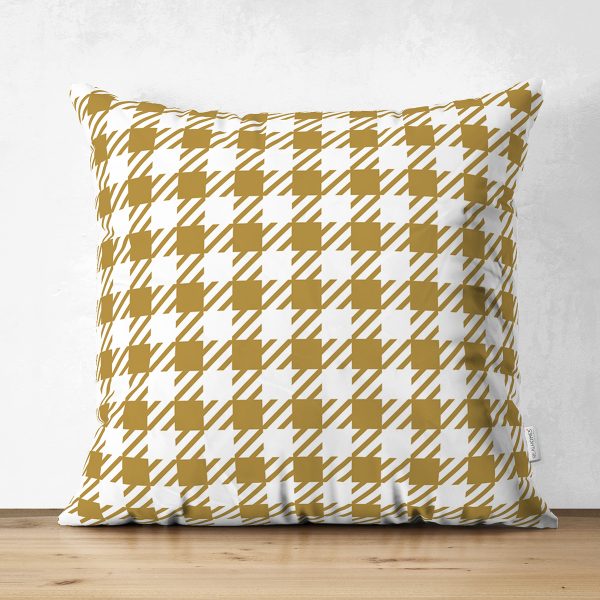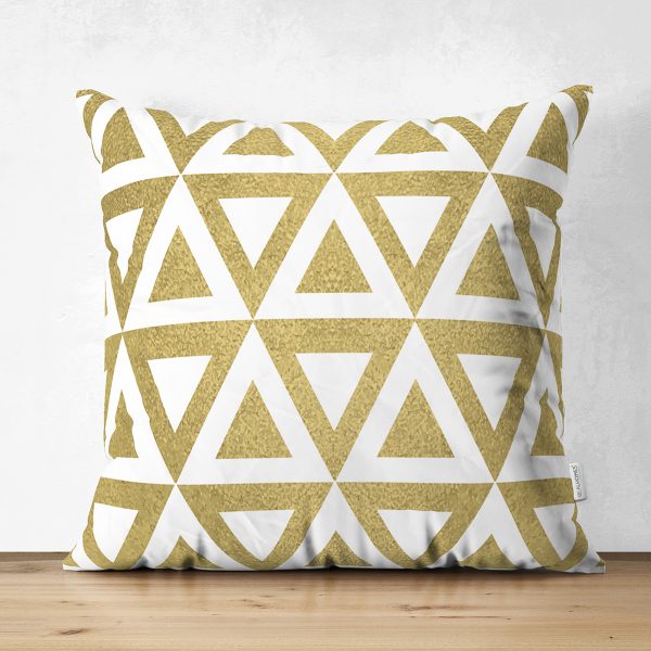 Çift Taraflı Gold Zeminde Gold Ucgen Detaylı Dijital Baskılı Modern Süet Yastık Kırlent Kılıfı