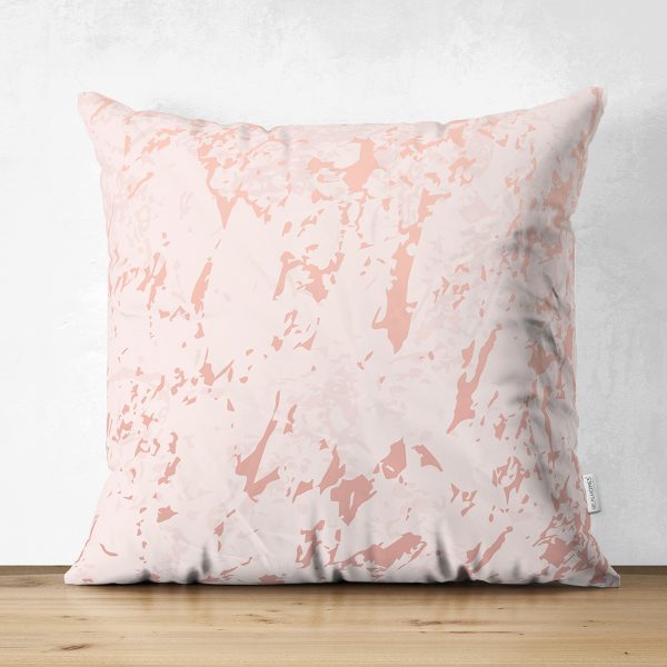 Çift Taraflı Pudra Zemin Üzerinde Golge Desenli Dijital Baskılı Modern Süet Yastık Kırlent Kılıfı