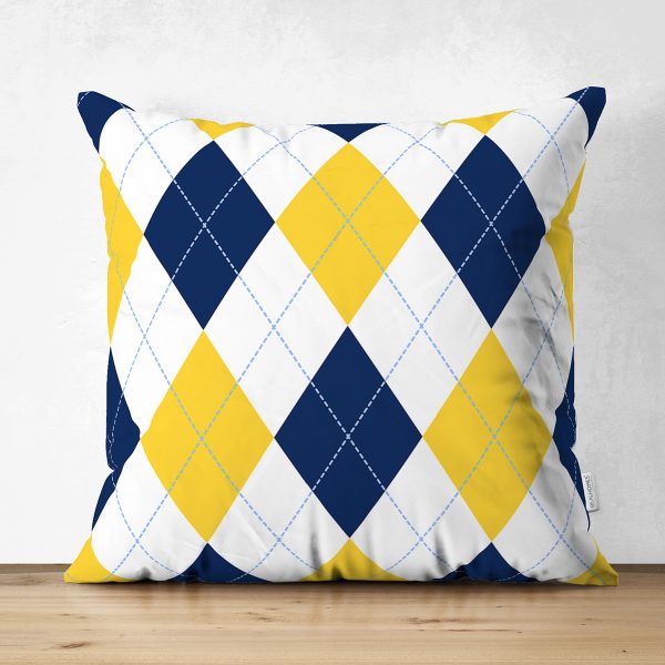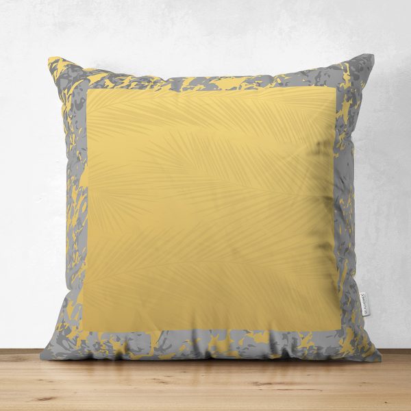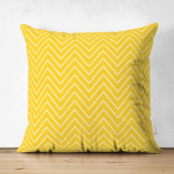 Çift Taraflı Sarı Zemin Üzerinde Geometrik Çizimli Dijital Baskılı Modern Süet Yastık Kırlent Kılıfı