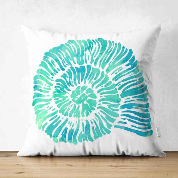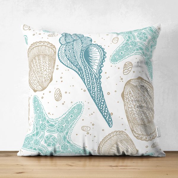 Çift Taraflı Beyaz Zemin Üzerinde Deniz Kabuğu Desenli Süet Yastık Kırlent Kılıfı
