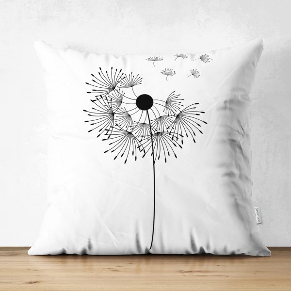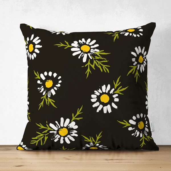 Çift Taraflı Siyah Zemin Üzerinde Papatya Desenli Dijital Baskılı Modern Süet Yastık Kırlent Kılıfı