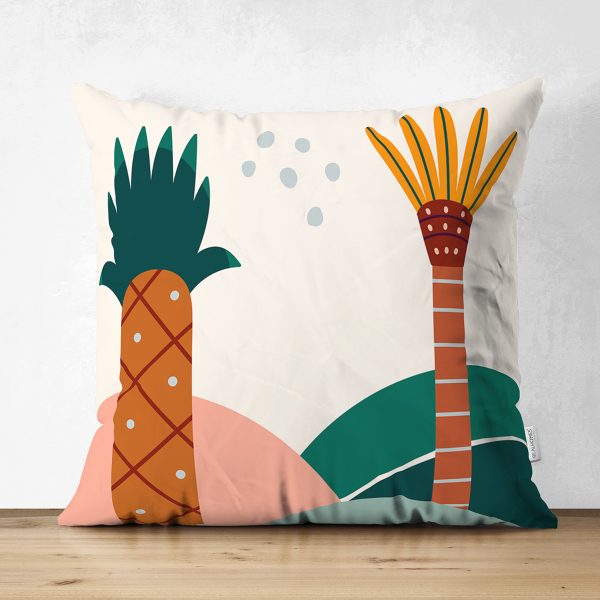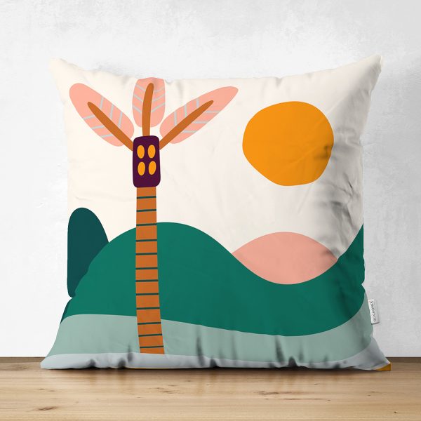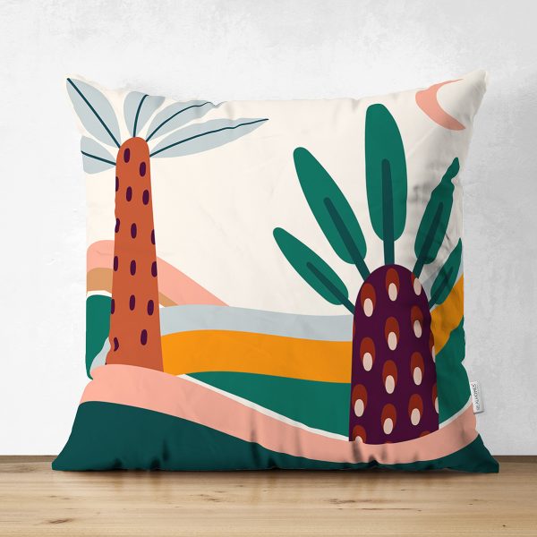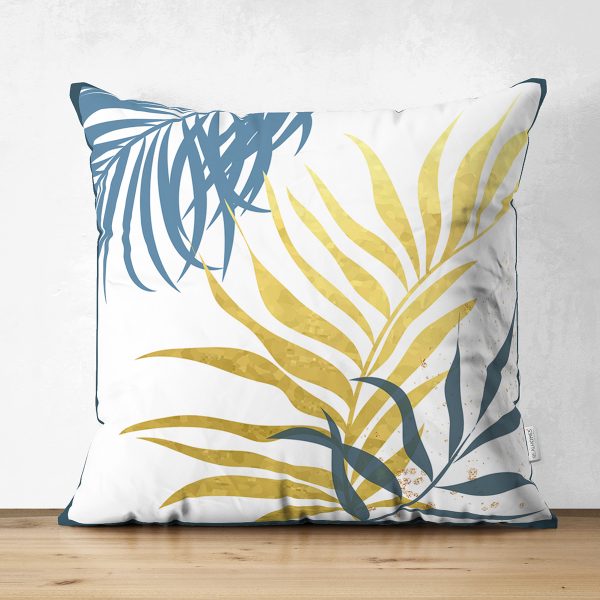 Çift Taraflı Renkli Zeminli Palmiye Desenli Dijital Baskılı Modern Süet Yastık Kırlent Kılıfı
