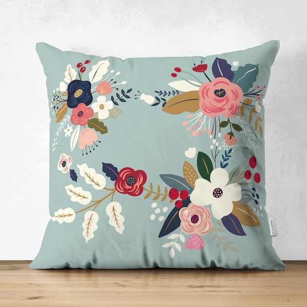 Çift Taraflı Renkli Zeminli Renkli Çiçek Desenli Dijital Baskılı Modern Süet Yastık Kırlent Kılıfı
