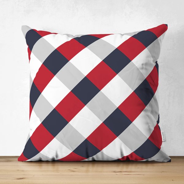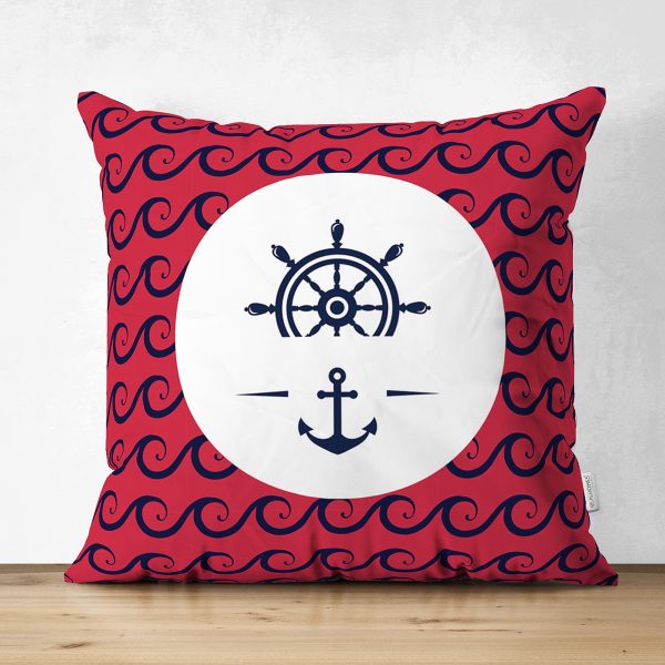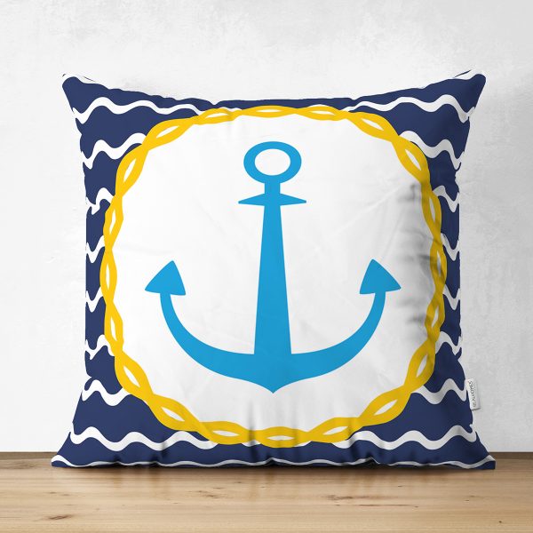 Çift Taraflı Renkli Zemin Üzerinde Çapa Desenli Dijital Baskılı Modern Süet Yastık Kırlent Kılıfı