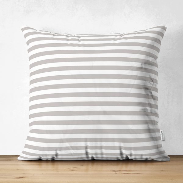 Çift Taraflı Beyaz Zemin Üzerinde Gri Çizgili Geometrik Desen Modern Süet Yastık Kırlent Kılıfı