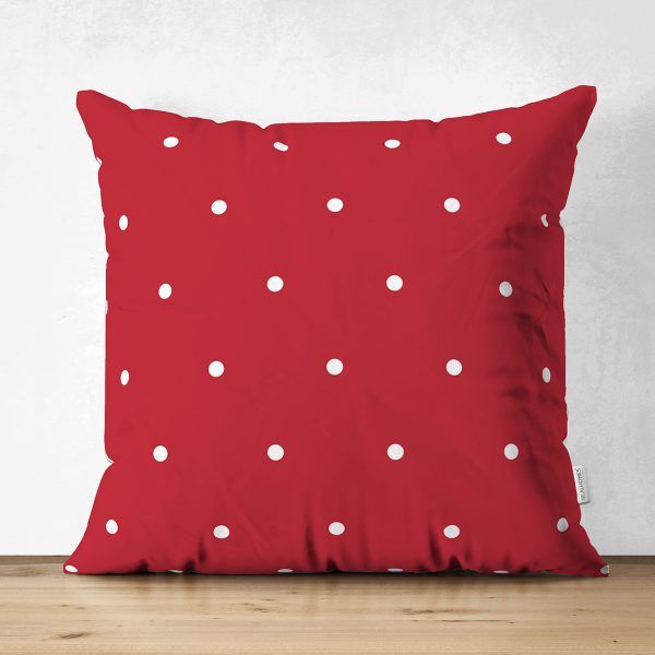 Çift Taraflı Renkli Zeminli Beyaz Puantiyeli Dijital Baskılı Modern Süet Yastık Kırlent Kılıfı