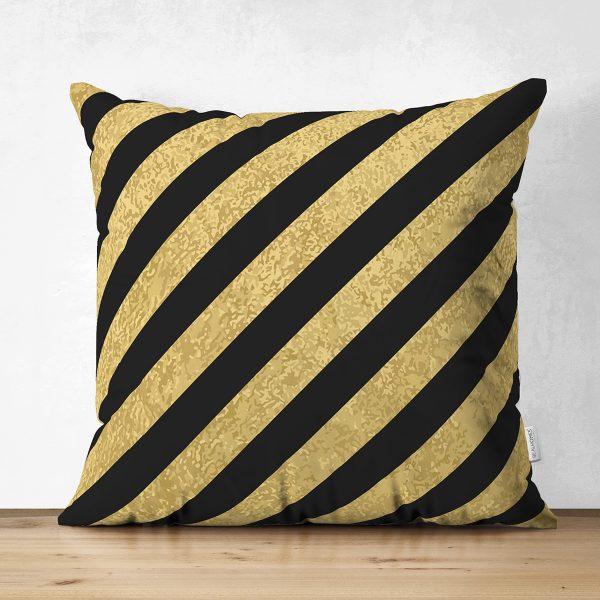 Çift Taraflı Gold Zeminli Siyah Geometrik Desenli Dijital Baskılı Modern Süet Yastık Kırlent Kılıfı