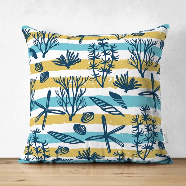 Çift Taraflı Beyaz Zemin Üzerinde Renkli Modern Çizgili Deniz Motifli Süet Yastık Kırlent Kılıfı