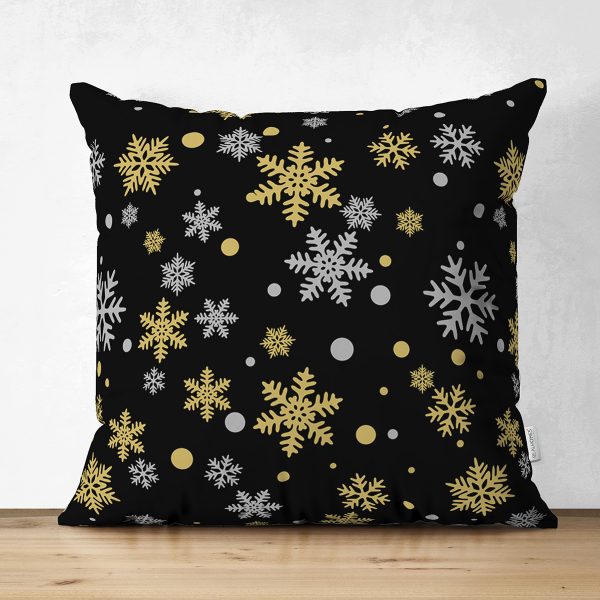 Çift Taraflı Siyah Zemin Üzerinde Gold Detaylı Kartanesi Desenli Süet Yastık Kırlent Kılıfı