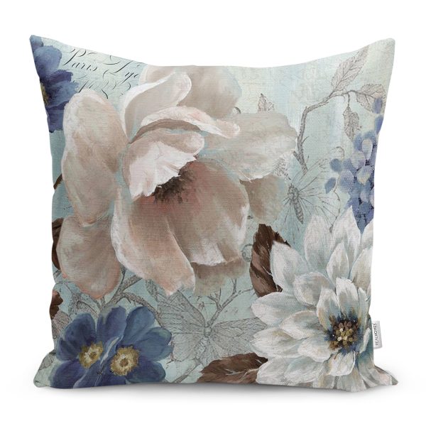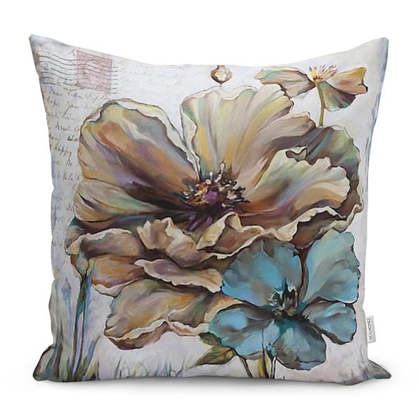 Realhomes Sarı Gri Ogea Çiçek Tasarımlı Dijital Baskılı Yastık Kırlent Kılıfı