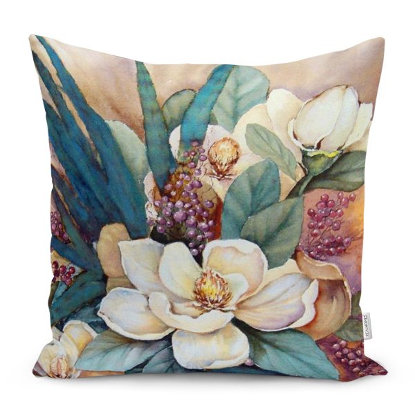 Realhomes Karakelem Çizimli Renklendirilmiş Gül Çiçek Motifli Dijital Baskılı Yastık Kırlent Kılıfı